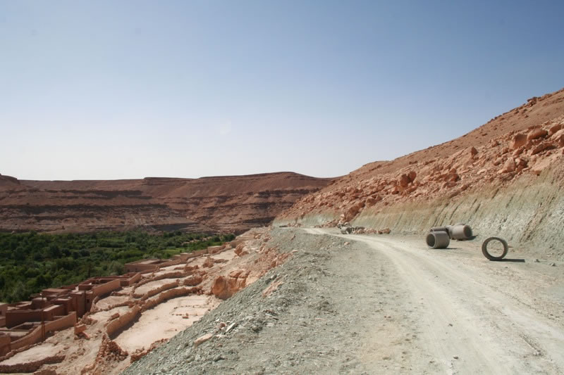 - Magnifique canyon et piste entre Telouet et Ait Benhaddou. L’aventure quoi! Malheureusement plus pour longtemps, la piste sera transformée en route.